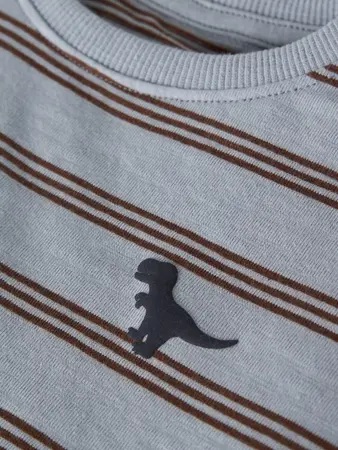 Camiseta en color azul claro, con print de rayas y detalle de dinosaurio en el pecho. Ligera, cómoda y súper fácil de combinar. Y todo, con la súper relación calidad/precio de esta marca escandinava.