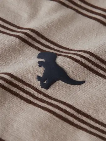 Camiseta en color neutro, con print de rayas y detalle de dinosaurio en el pecho. Ligera, cómoda y súper fácil de combinar. Y todo, con la súper relación calidad/precio de esta marca escandinava.