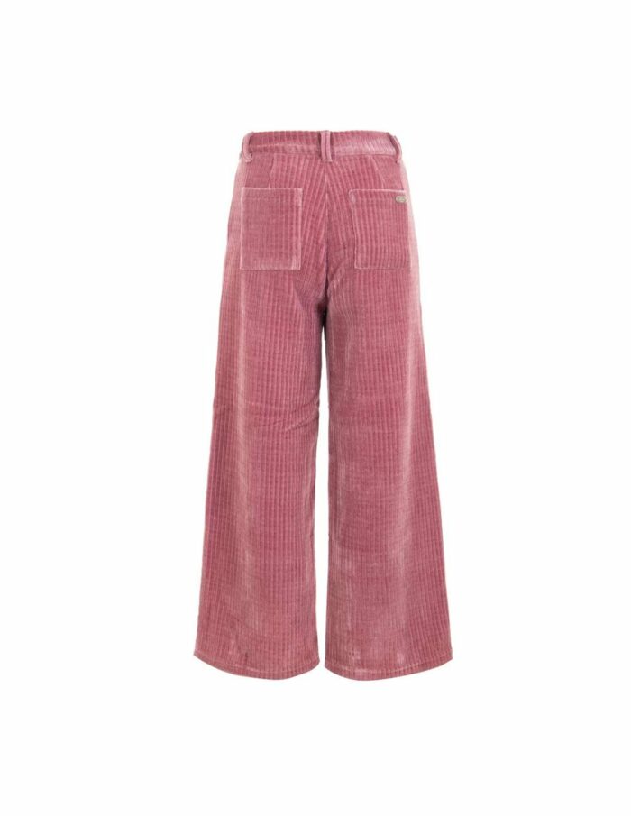 Pantalón rosa de corte regular y pierna holgada. Tiene una cinturilla elástica con botones interiores para ajustar, cierre de cremallera y un botón a presión. Tejido exterior de terciopelo con bolsillos delanteros y traseros. Sienta genial y le da un toque diferente a cualquier outfit.