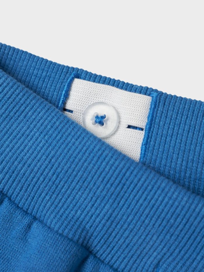 Pantalón corto en color azul, con bolsillos laterales y tipo cargo, que les servirá para guardar tesoros. Es súper cómodo y suave, con goma y botones interiores en la cinturilla para que ajuste y tengan total autonomía.