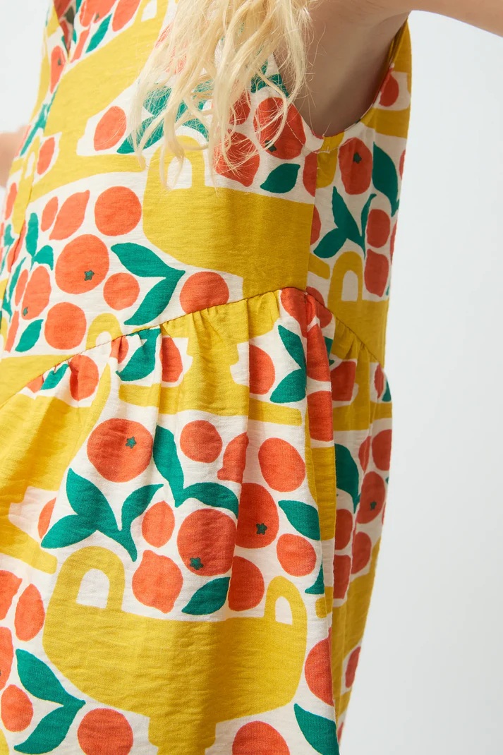 Vestido sin mangas con estampado de cítricos y súper veraniego, de Compañía Fantástica.