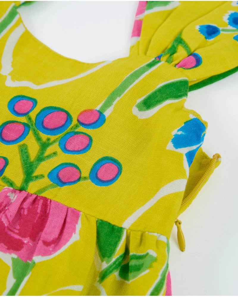 Vestido confeccionado en un tejido ligero y suave, ideal para los días cálidos. Presenta un estampado floral vibrante en tonos alegres que aporta frescura y un estilo muy veraniego. Los tirantes anchos con volantes ofrecen un acabado delicado y favorecedor, mientras que la falda con vuelo proporciona comodidad y libertad de movimiento. Su diseño holgado facilita la ventilación y garantiza una agradable sensación al llevarlo. Una prenda cómoda, colorida y perfecta para acompañar a la pequeña en cualquier ocasión estival.